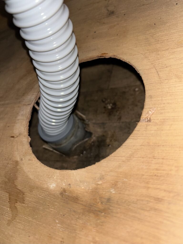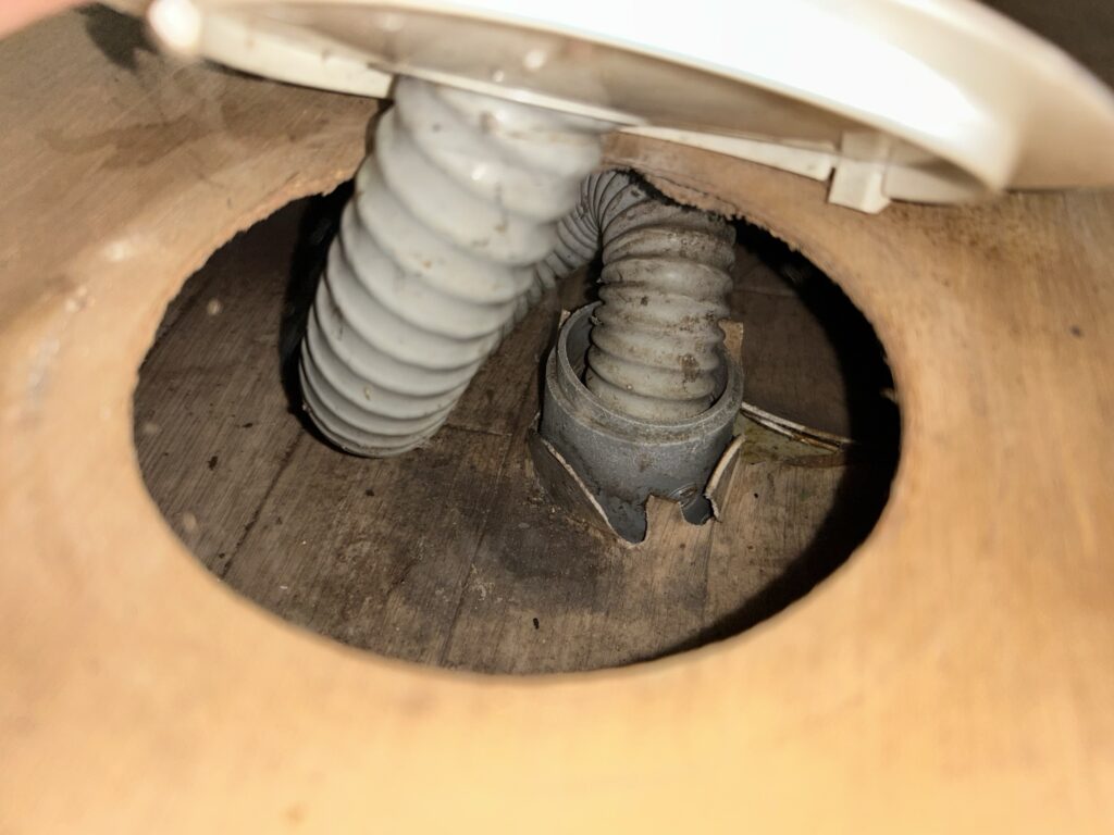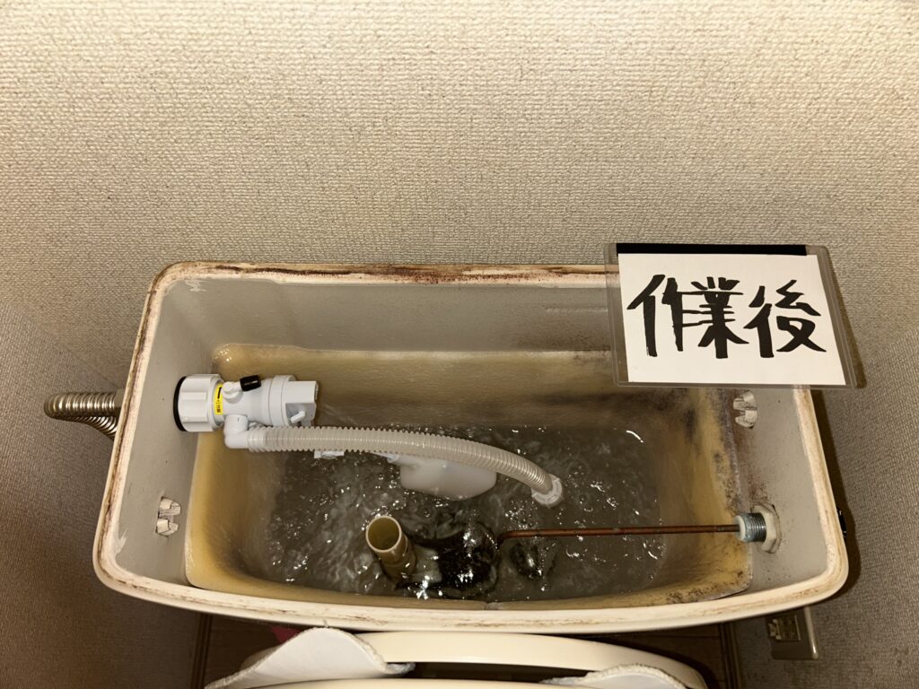 ボールタップとゴムフロートの交換と合わせて左側の給水管をフレキ管に交換し、排水テストを行い水漏れも無く問題無い事を確認😁